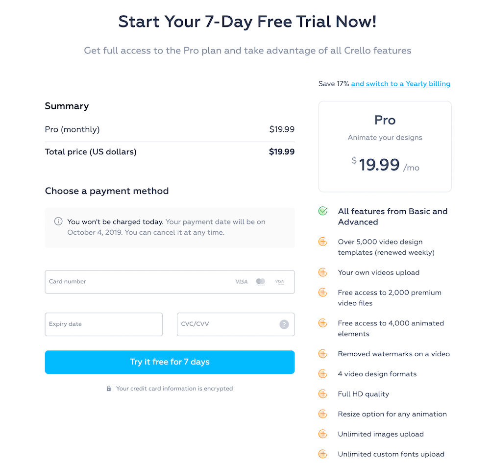 Crello pozwala również na wgranie własnych elementów przygotowanych w innych programach graficznych, na przykład logotypu marki lub Twojego bloga.