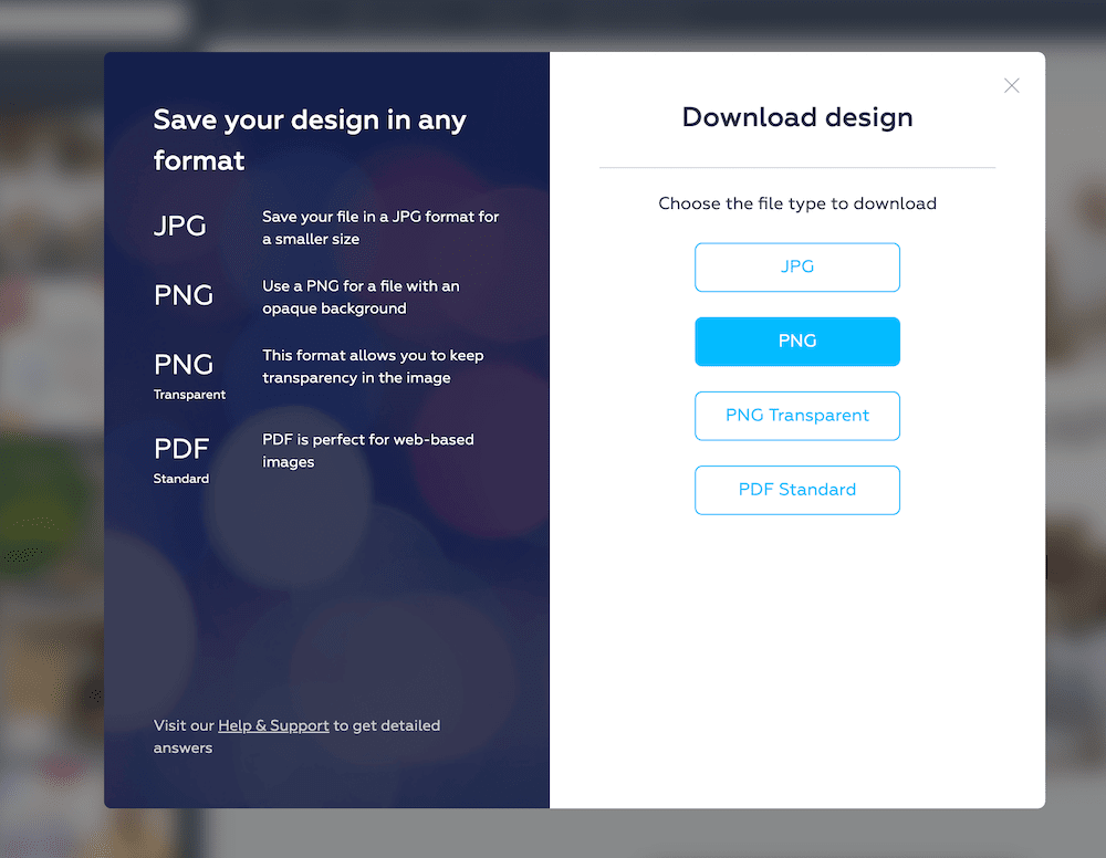W darmowej wersji rozwiązania możesz pobrać swoje grafiki w 4 formatach.