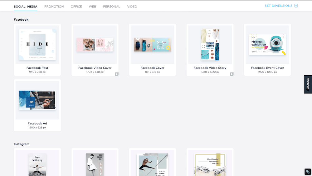 Wewnątrz skorzystać możesz z domyślnych ustawień, w tym rozmiarów grafik dla poszczególnych platform oraz ich elementów, jak na przykład cover photo.