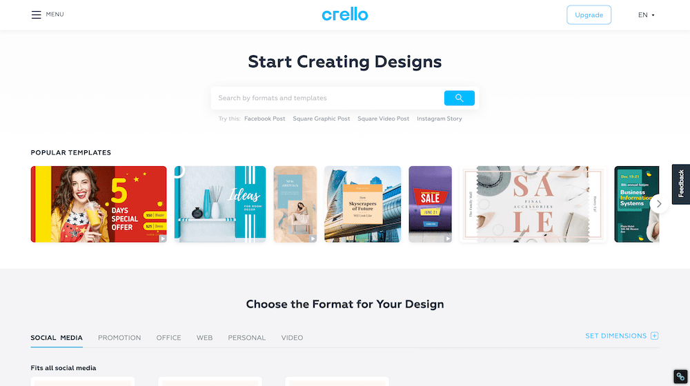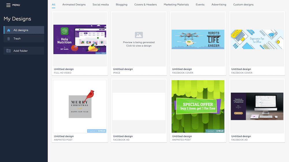 Darmowe narzędzie do tworzenia grafik, w tym postów, inforgrafik oraz prostych animacji, czyli Crello.